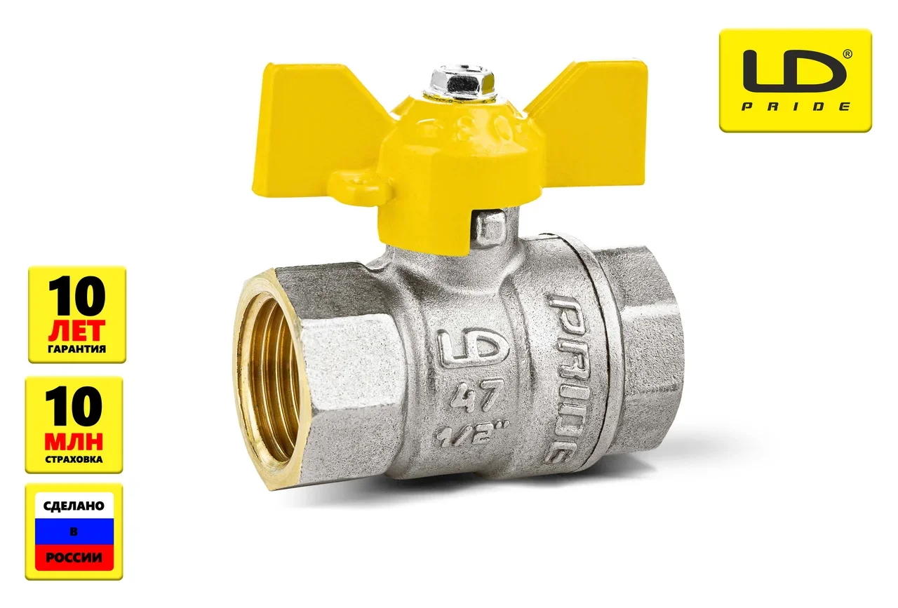 Кран шаровый в-в Ду 15 бабочка LD Pride GAS Ру40 Tmax=80 LD.47.350.15